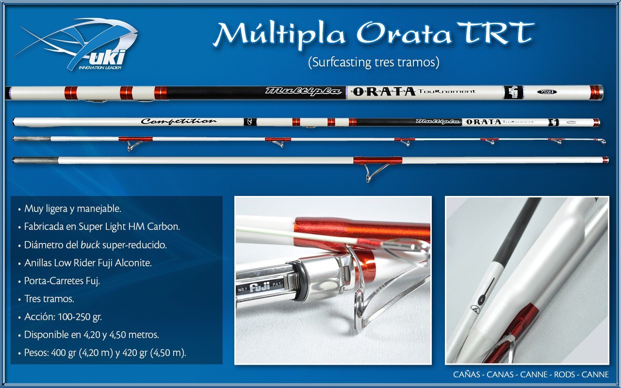 Yuki Multipla Orata TRT Surf Kamışları Yuki Fishing Markasının Üst segment kamışlarındandır. Yuki Markası Surf Casting Turnuvalarında bir çok şampiyonlukları vardır ve kimseye birinciliği bırakmamaktadır.
